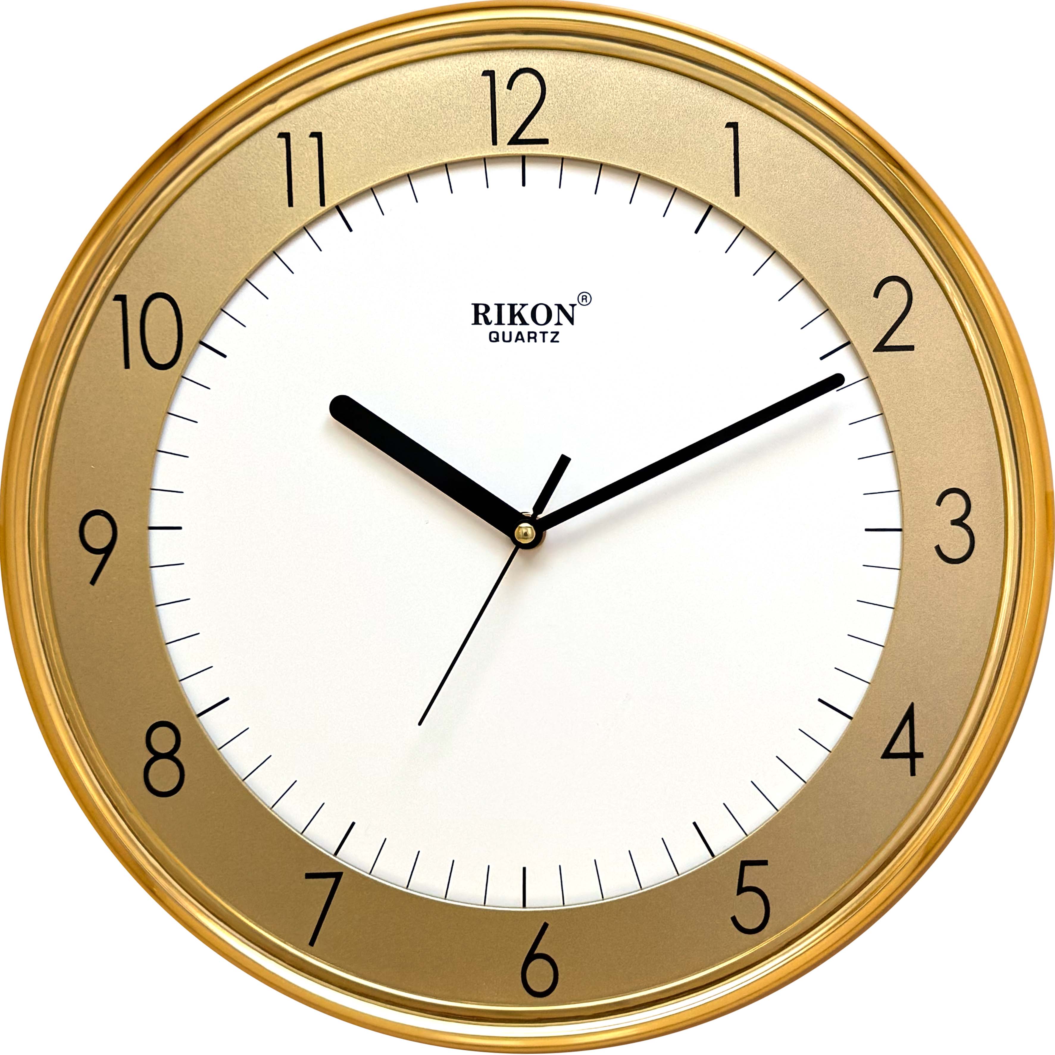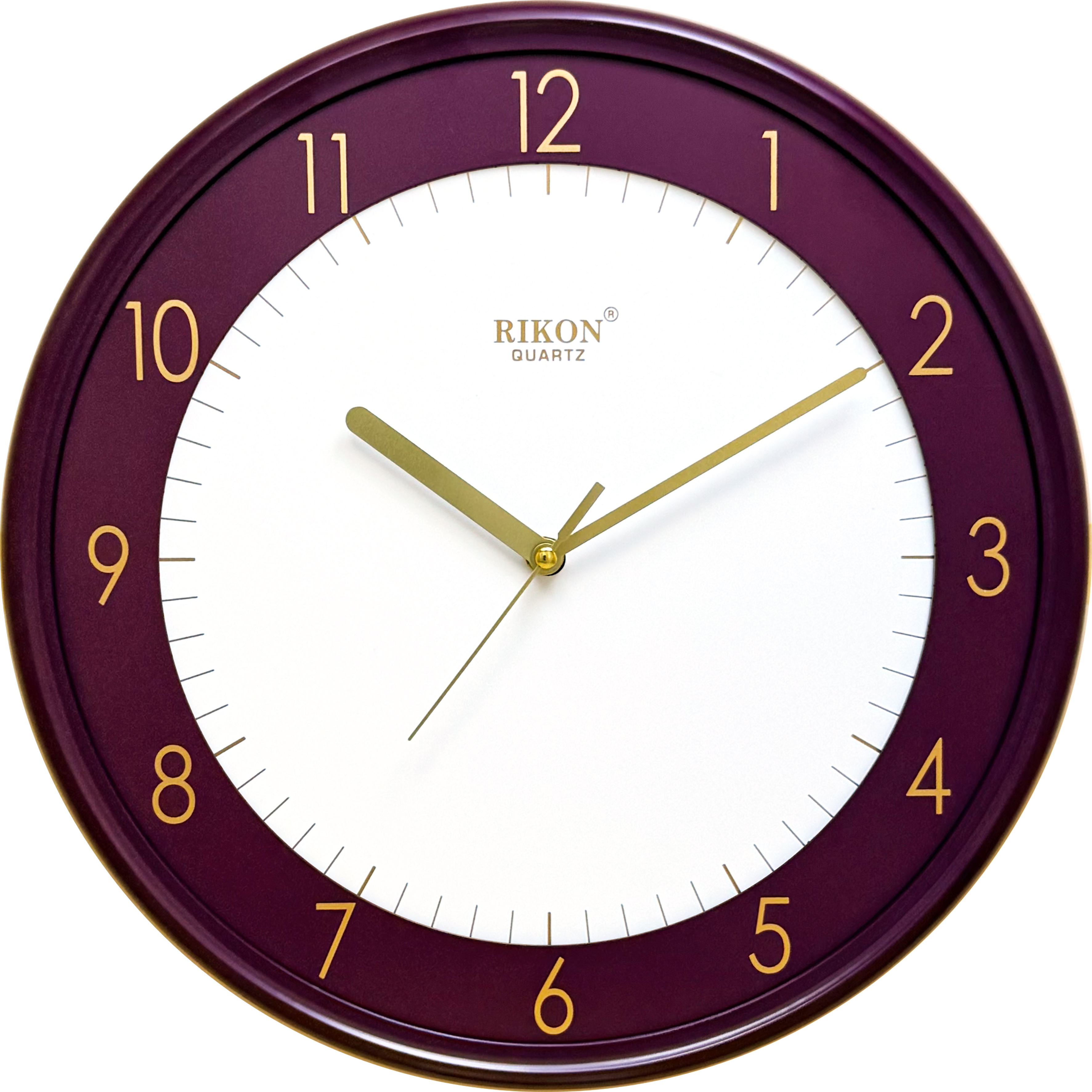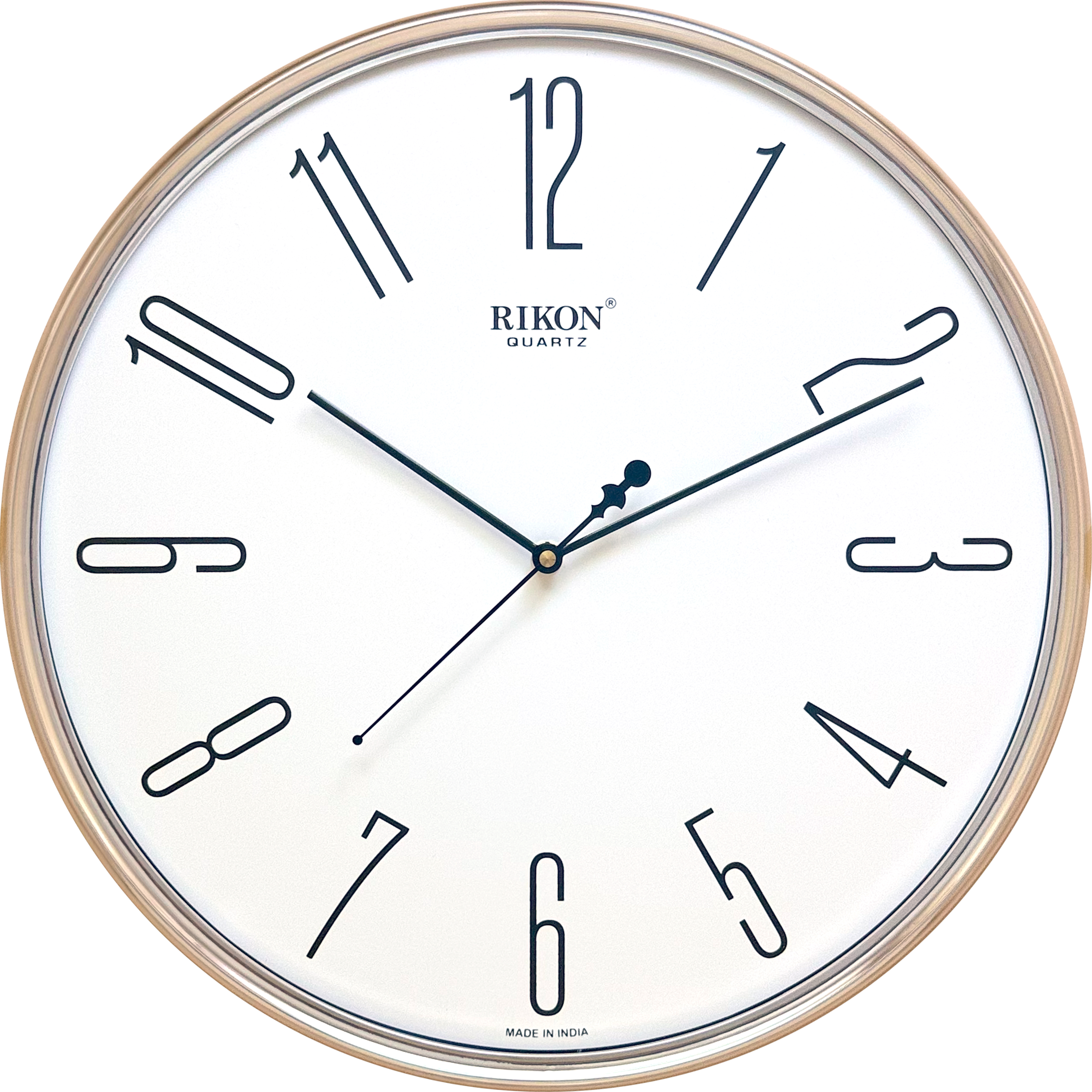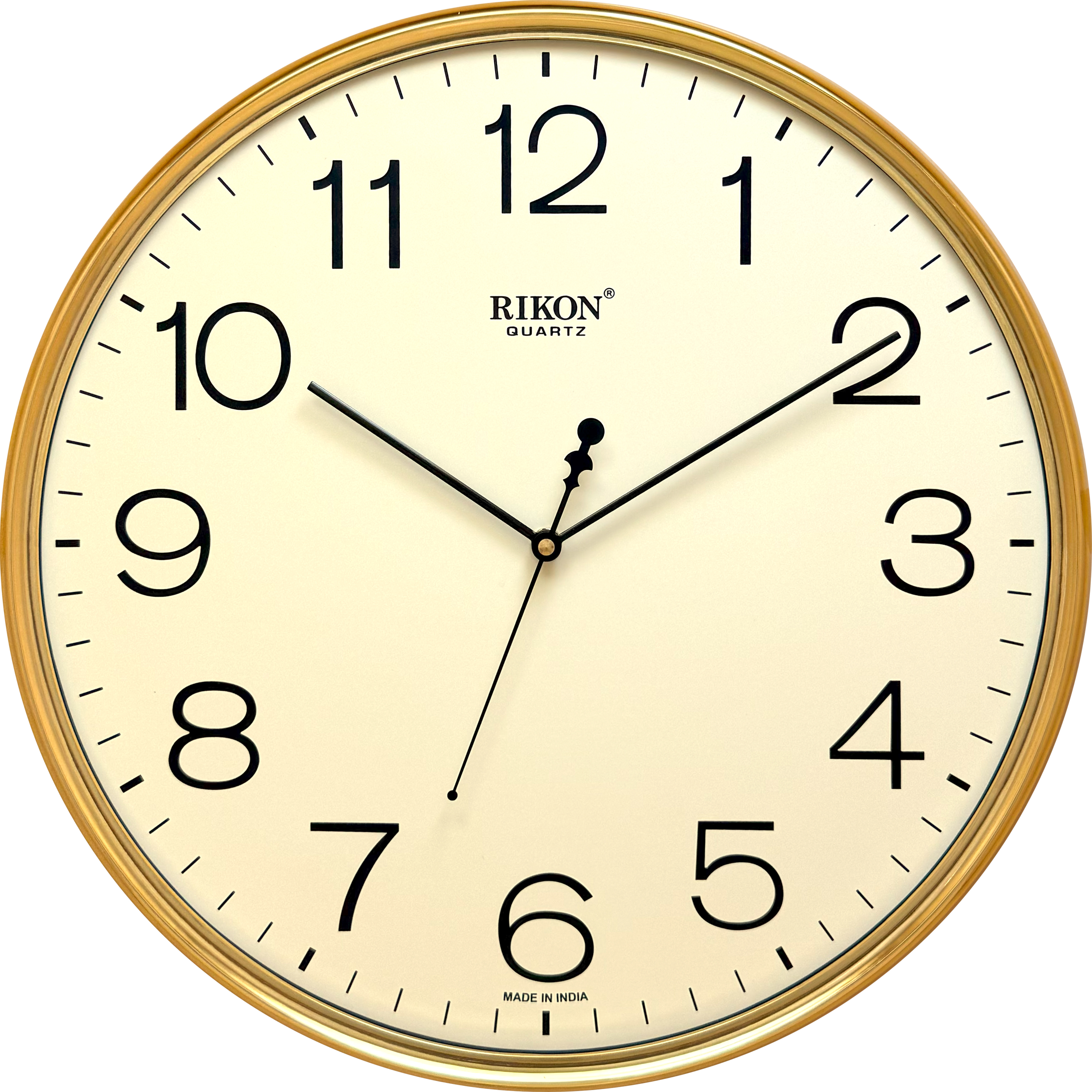 This vacuum-plated gold and wood-grain finish construction of wall clock radiates quality and warmth and gives the clock an attractive look.