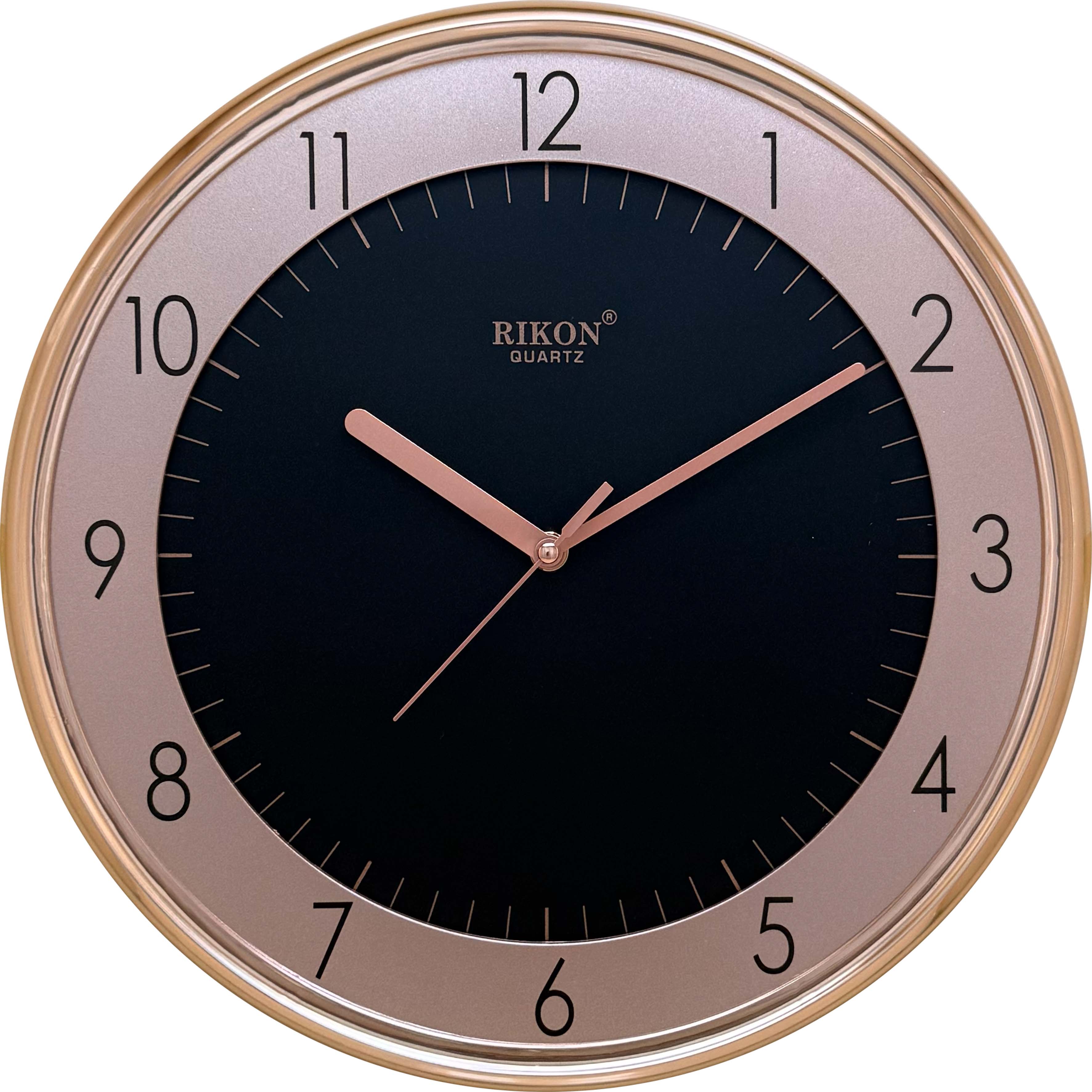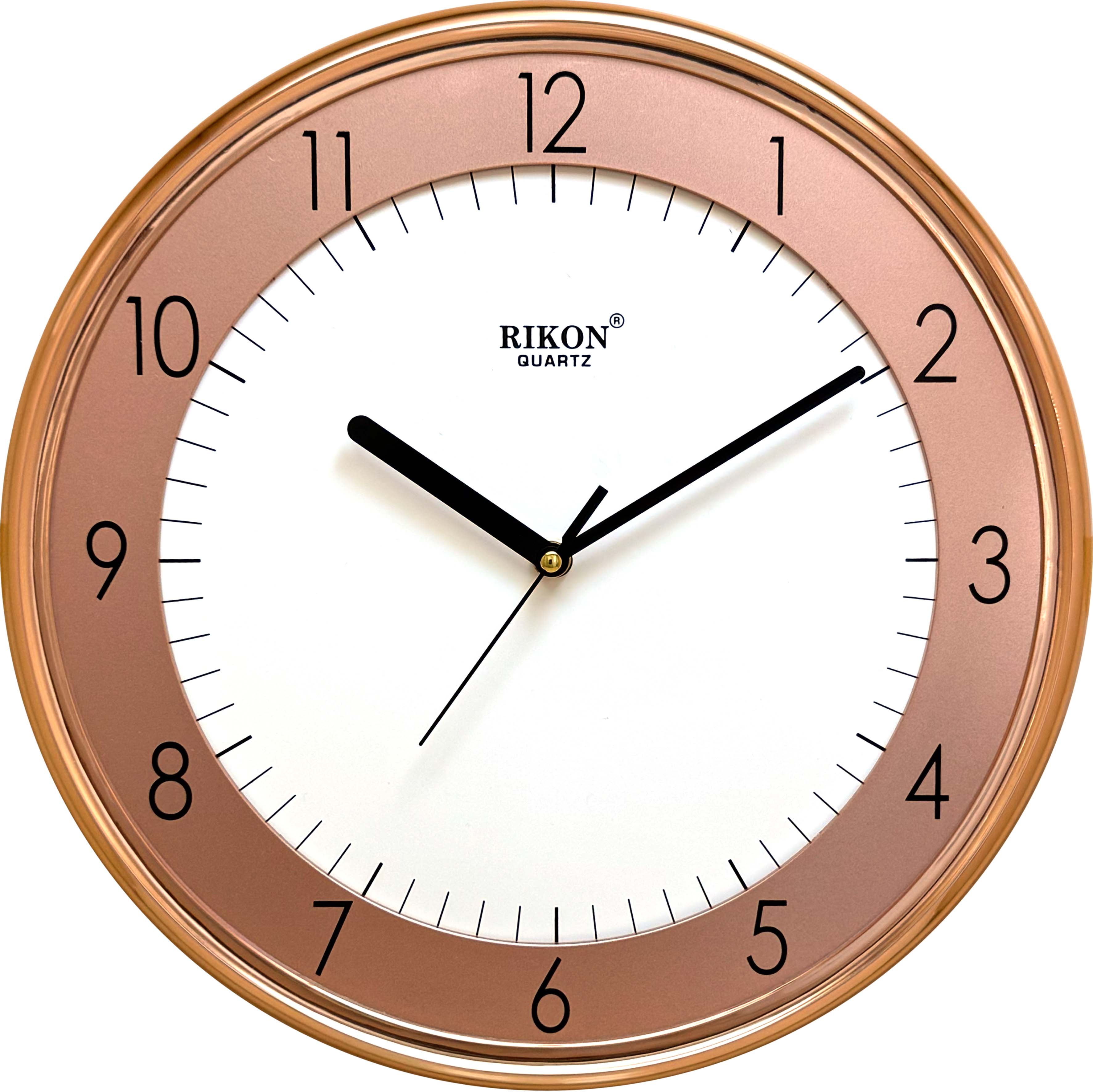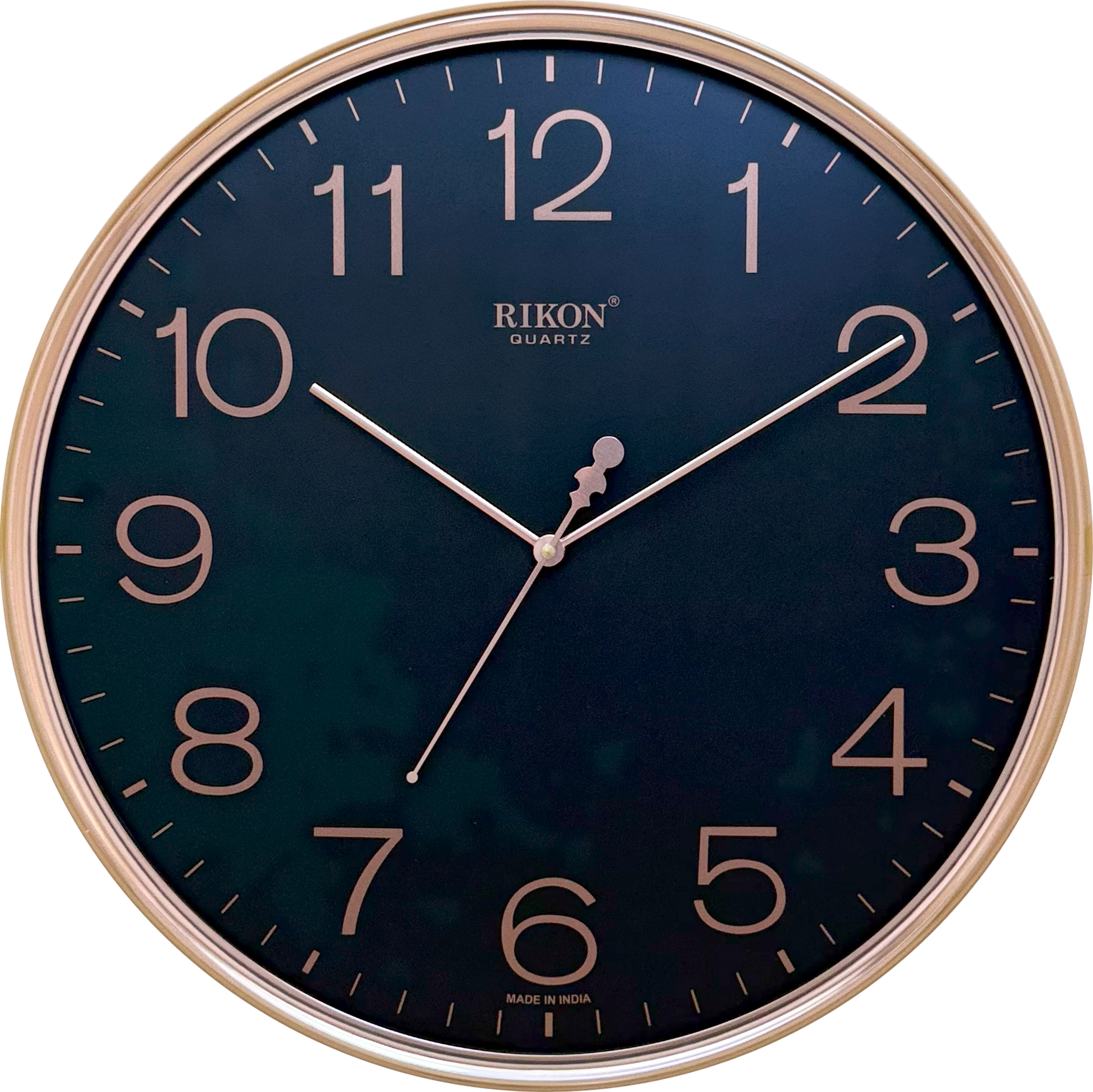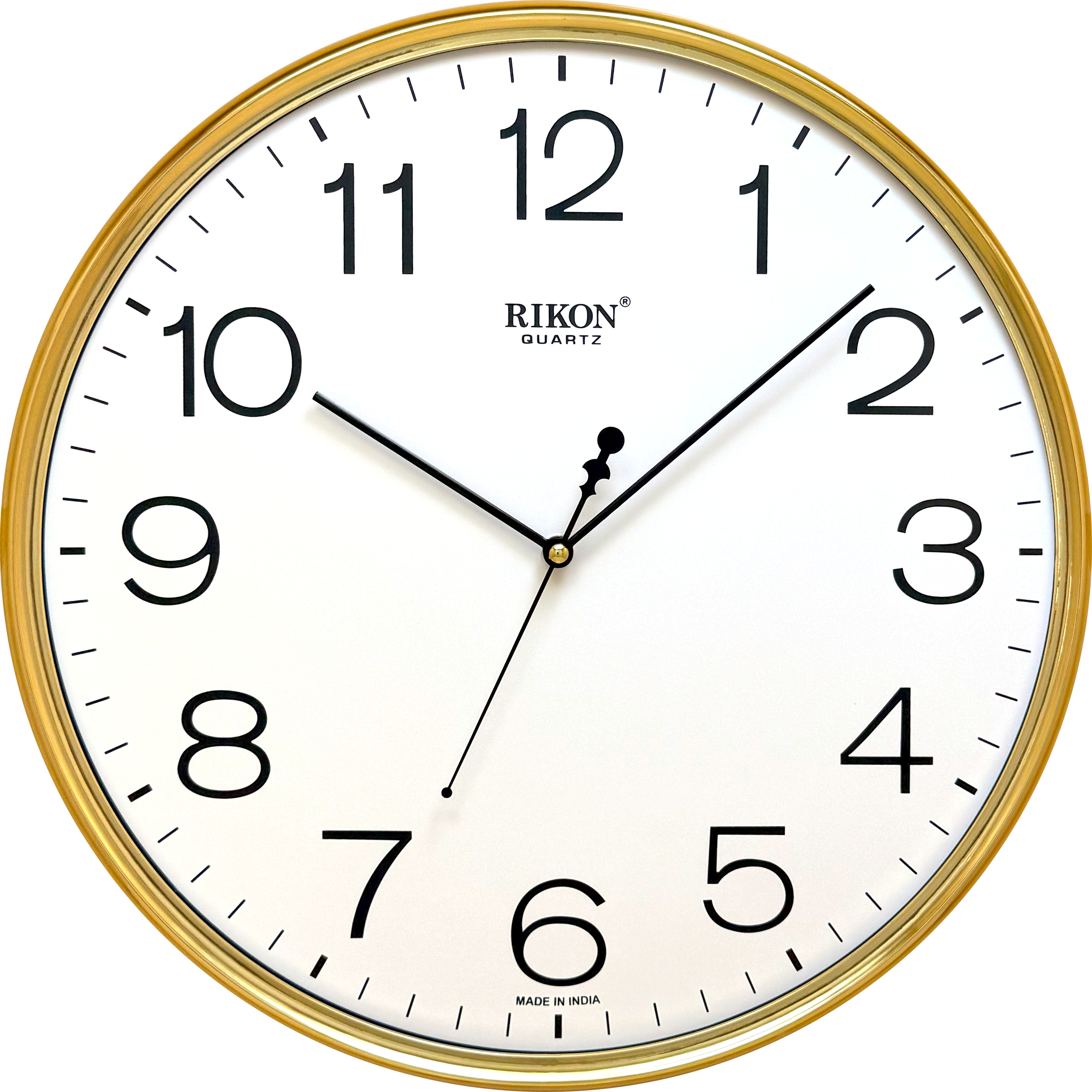 This vacuum-plated gold and wood-grain finish construction of wall clock radiates quality and warmth and gives the clock an attractive look.